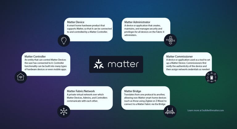 Matter was built to leverage existing infrastructure in your home, reducing the complexity of your smart home and enabling easier setup and control without needing a full understanding of their smart home architecture. But knowing the core components and their roles in your Matter smart home ecosystem will enable you to better understand your smart home and plan for future expansion.
